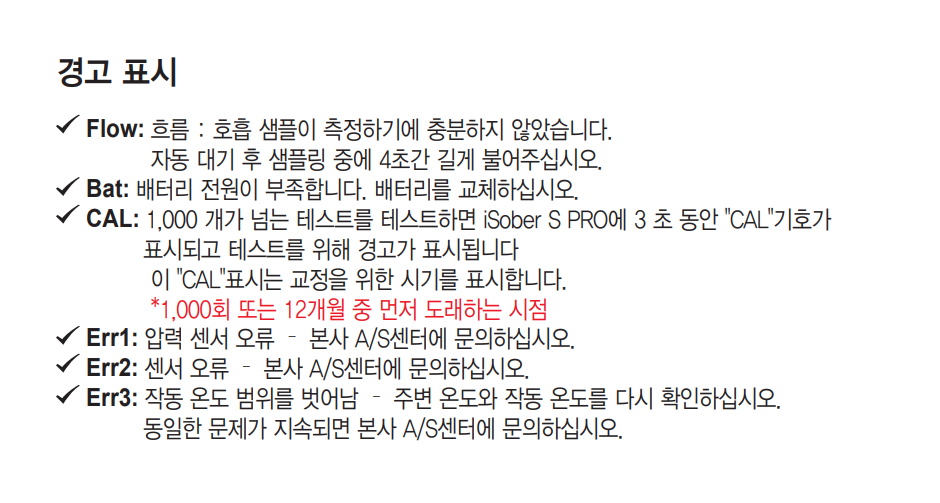 | 오차 범위 | ± 5% ( 0.050 %BAC 기준 ) |